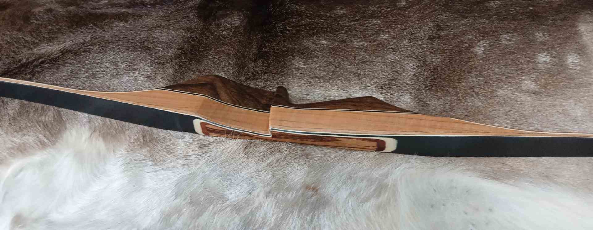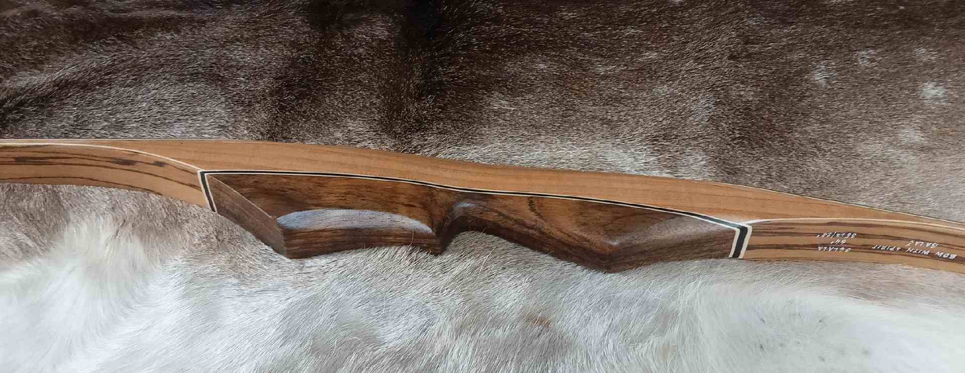 Specifikace: střed třešeň/ovangol, černý gordon laminát, dýha zebrano ramena dub/javor, tipsy vrstvený sklolaminát, lak matný strukturovaný jemný.